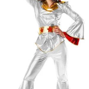 Disfraz Disco Años 70 Plateado y Rojo para Mujer
