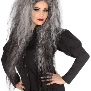 Peluca de Bruja Gris con Melena Larga Lisa