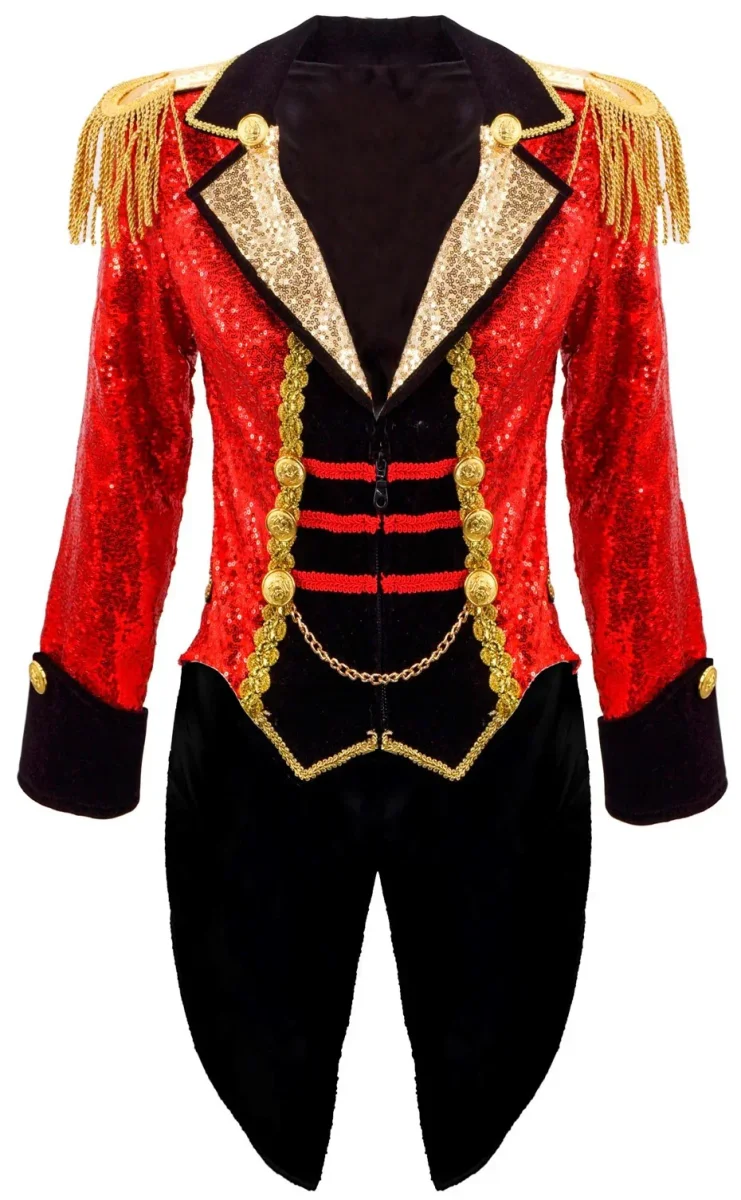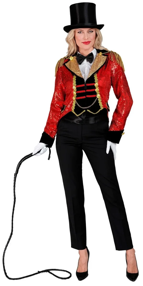 ¿Estás buscando una chaqueta para tu disfraz de domadora? Con la chaqueta de frac roja con lentejuelas para mujer tendrás el complemento perfecto para disfrazarte como una auténtica directora o domadora de circo y triunfarás en tu fiesta de disfraces por tu gran elegancia.