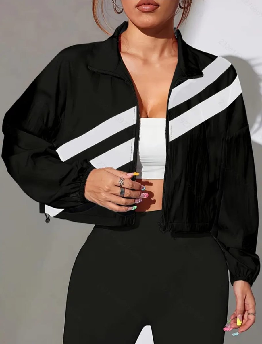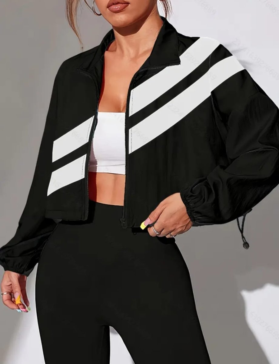 Dale un toque de estilo y comodidad a tu outfit con nuestra chaqueta deportiva oversize. Con un diseño moderno y relajado, esta chaqueta en color Negro destaca por sus elegantes franjas cruzadas blancas, que le aportan un look dinámico y sofisticado. Además, su dobladillo con cordón ajustable te permite personalizar el fit para mayor comodidad.