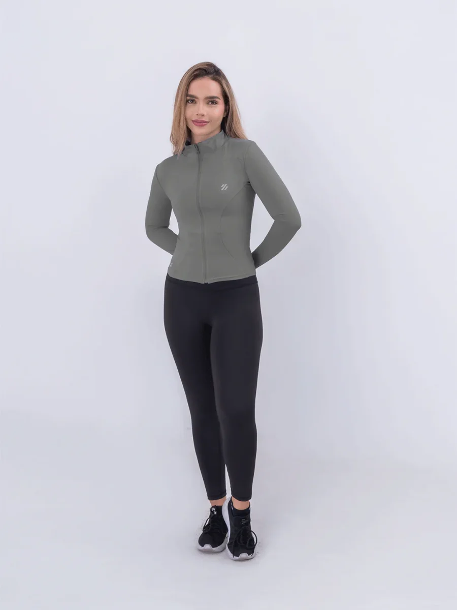 Su cierre frontal facilita ponerla y retirarla con rapidez, mientras que el cuello alto brinda una sensación calida y protegida. Los orificios para el pulgar aseguran un mejor ajuste en las mangas y mayor abrigo en las manos. Es perfecta para running, yoga, caminatas y sesiones de entrenamiento en climas frescos.