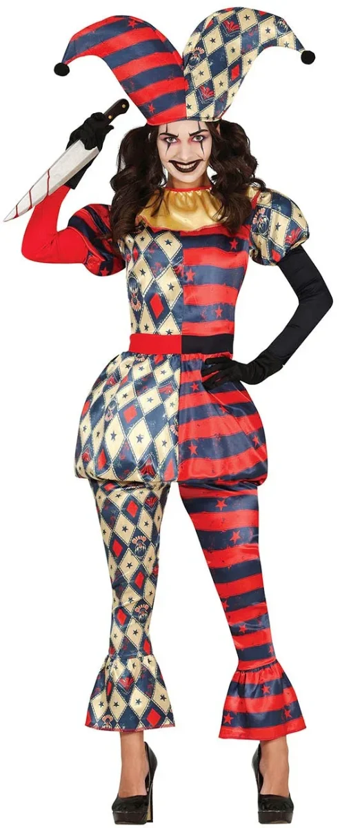 ¿Estás buscando un disfraz de payasa asesina para tu fiesta de Halloween? Con el disfraz de arlequina diabólica para adulta tendrás el traje perfecto para disfrazarte como una terrorífica bufona psicópata y triunfarás en tu fiesta de Halloween.