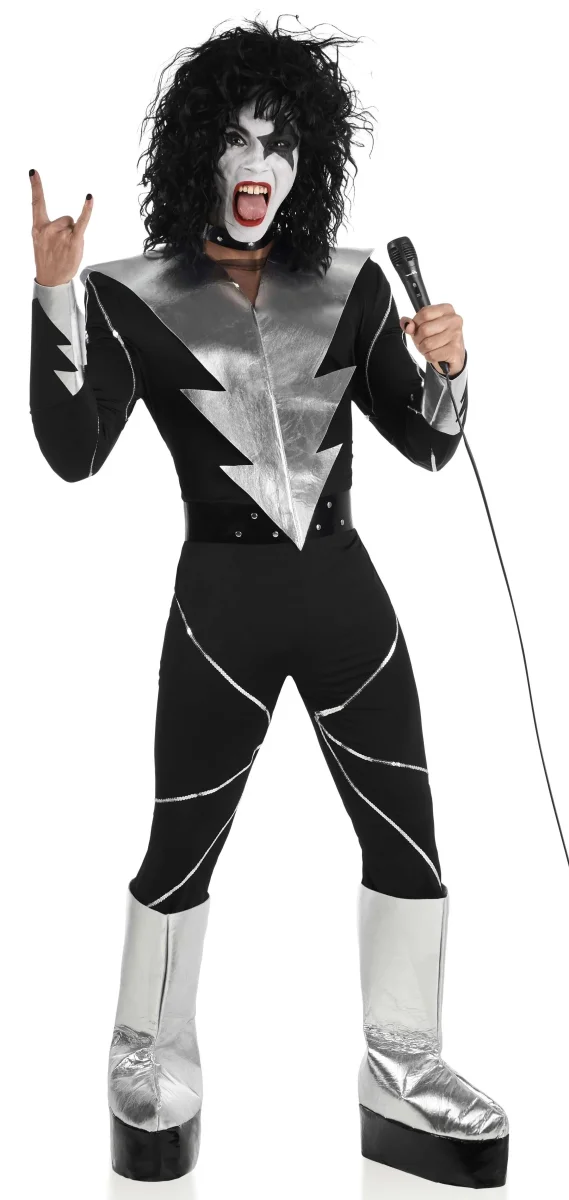 ¿Estás buscando un disfraz de estrella del rock para tu fiesta? Con el disfraz de cantante de heavy metal para hombre tendrás el traje perfecto para disfrazarte como los miembros de la mítica banda estadounidense Kiss y triunfarás en tu fiesta de disfraces.