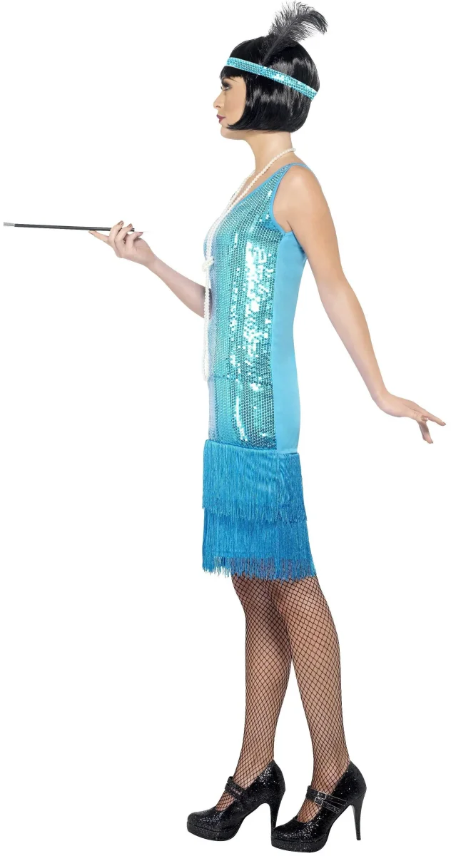 ¿Estás buscando un disfraz charlestón para tu fiesta? Con el disfraz de charlestón azul con lentejuelas para adulta tendrás el traje perfecto para disfrazarte al más puro estilo años 20, y triunfarás en tu fiesta de disfraces.