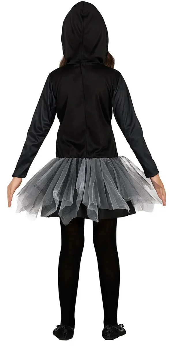 ¿Estás buscando un disfraz de esqueleto para tu hija? Con el disfraz de esqueleto infantil con tutú y capucha tendrás el vestido perfecto para disfrazar a tu hija como un terrorífico esqueleto en su fiesta de Halloween.