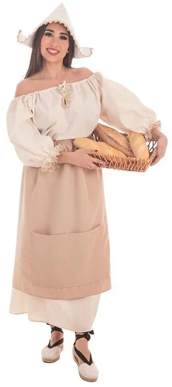 ¿Estás buscando un disfraz de panadera o molinera para tu fiesta medieval? Con el disfraz de molinera medieval para adulto tendrás el vestido perfecto para disfrazarte como las personas que se dedicaban a moler el grano en molinos para obtener harina y poner elaborar el pan.