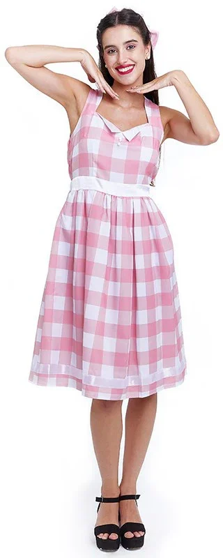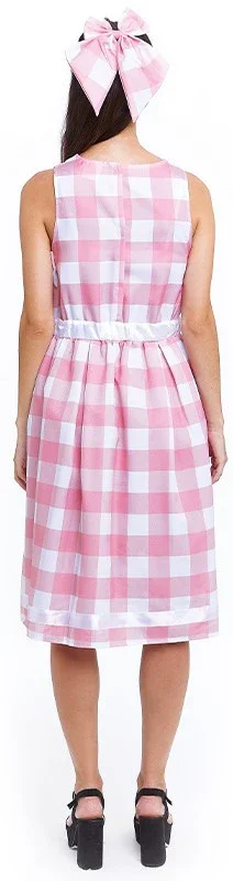 ¿Estás buscando un disfraz de Barbie para tu fiesta? Con el disfraz de Barbie para mujer tendrás el atuendo perfecto para disfrazarte como esta famosa muñeca de juguete como su vestido estilo años 50 de cuadros rosas como el que lleva en la exitosa película «Barbie» y triunfarás en tu fiesta de disfraces.