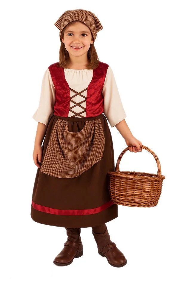 ¿Buscas el traje medieval más auténtico para la más peque de la casa? Este modelo de campesina, posadera o mesonera hará que tu niña se convierta en el centro de atención de su feria medieval.