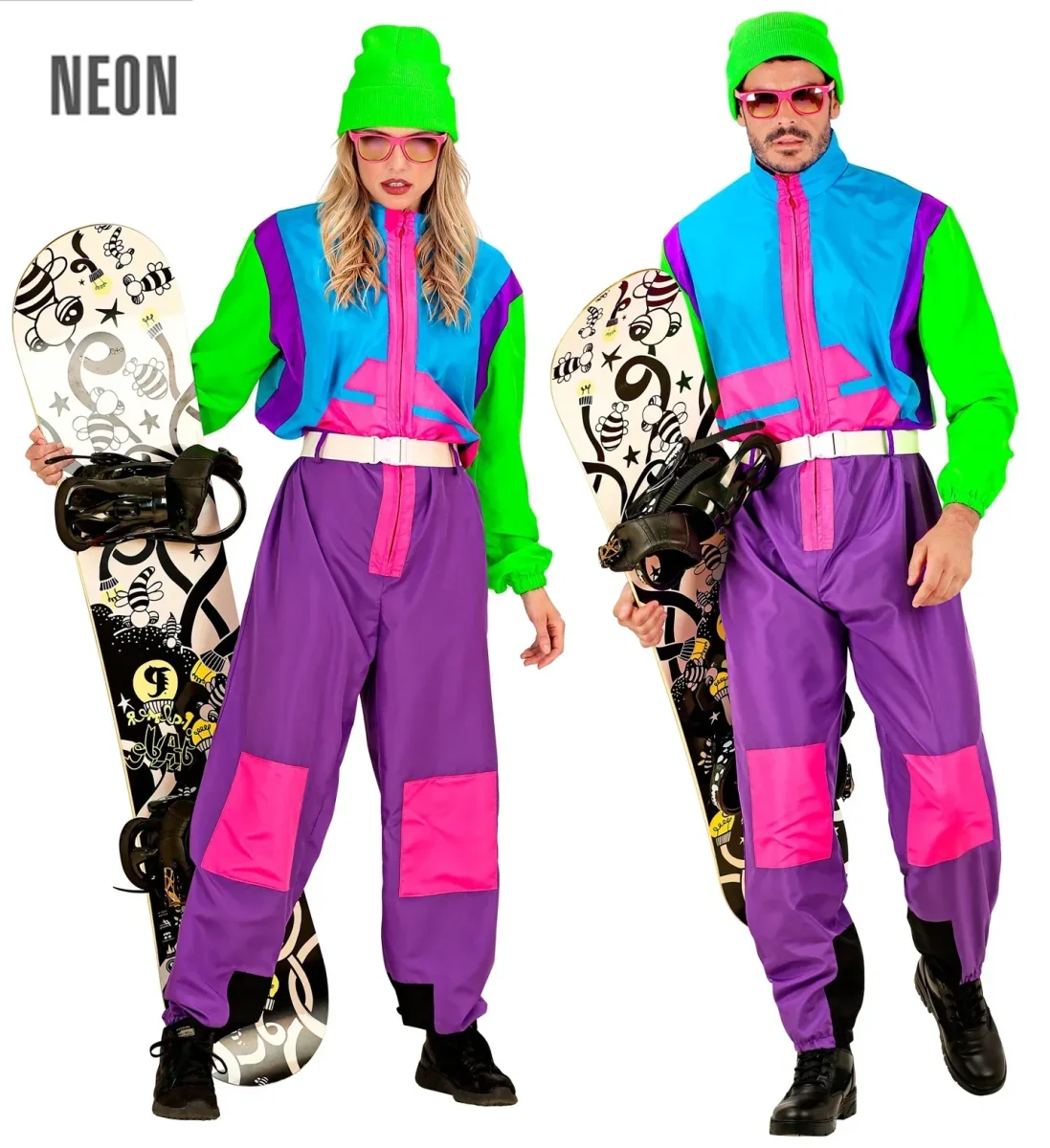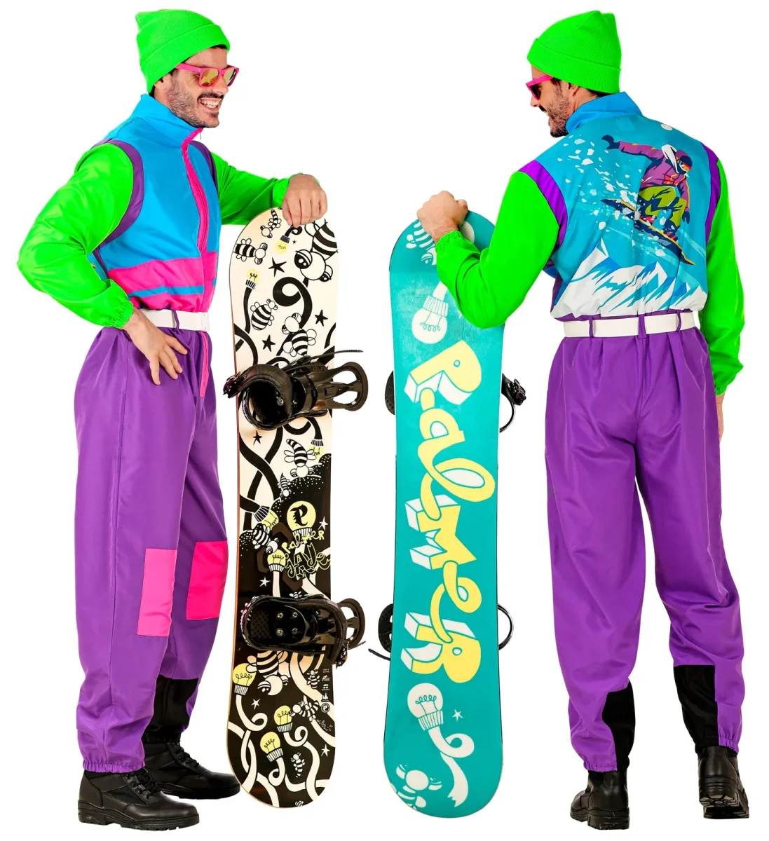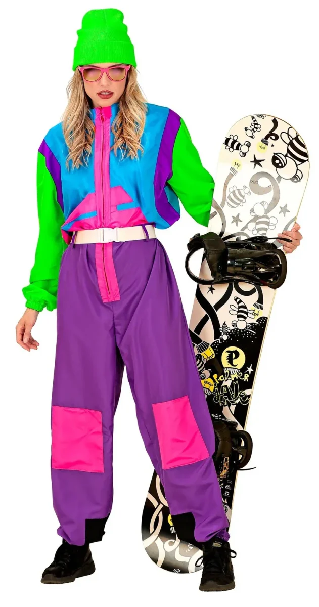 ¿Estás buscando un disfraz años 80 para tu fiesta? Con el disfraz de snowboarder para hombre o mujer tendrás un traje estilo ochentero para disfrazarte como los practicantes de este deporte de nieve. Además, este disfraz brillará bajo las luces UV (luz negra) por lo que destacarás en tu fiesta.