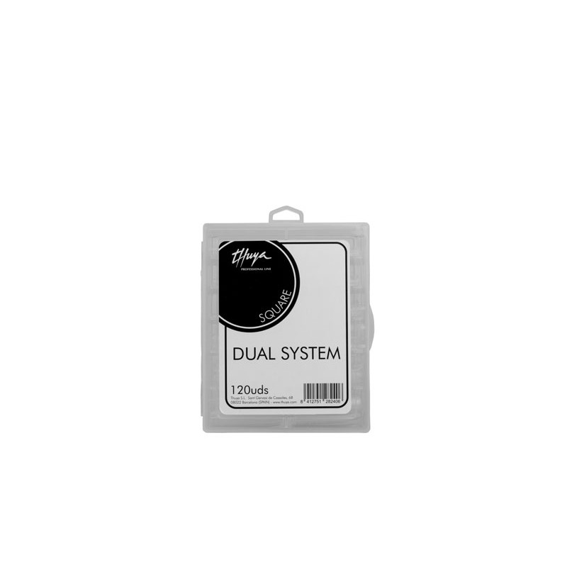 Tips Dual System para realizar la técnica sistema dual. Forma Square. 120 unidades. Permiten un ahorro de tiempo en limado y producto consiguiendo uñas más flexibles y resistentes.