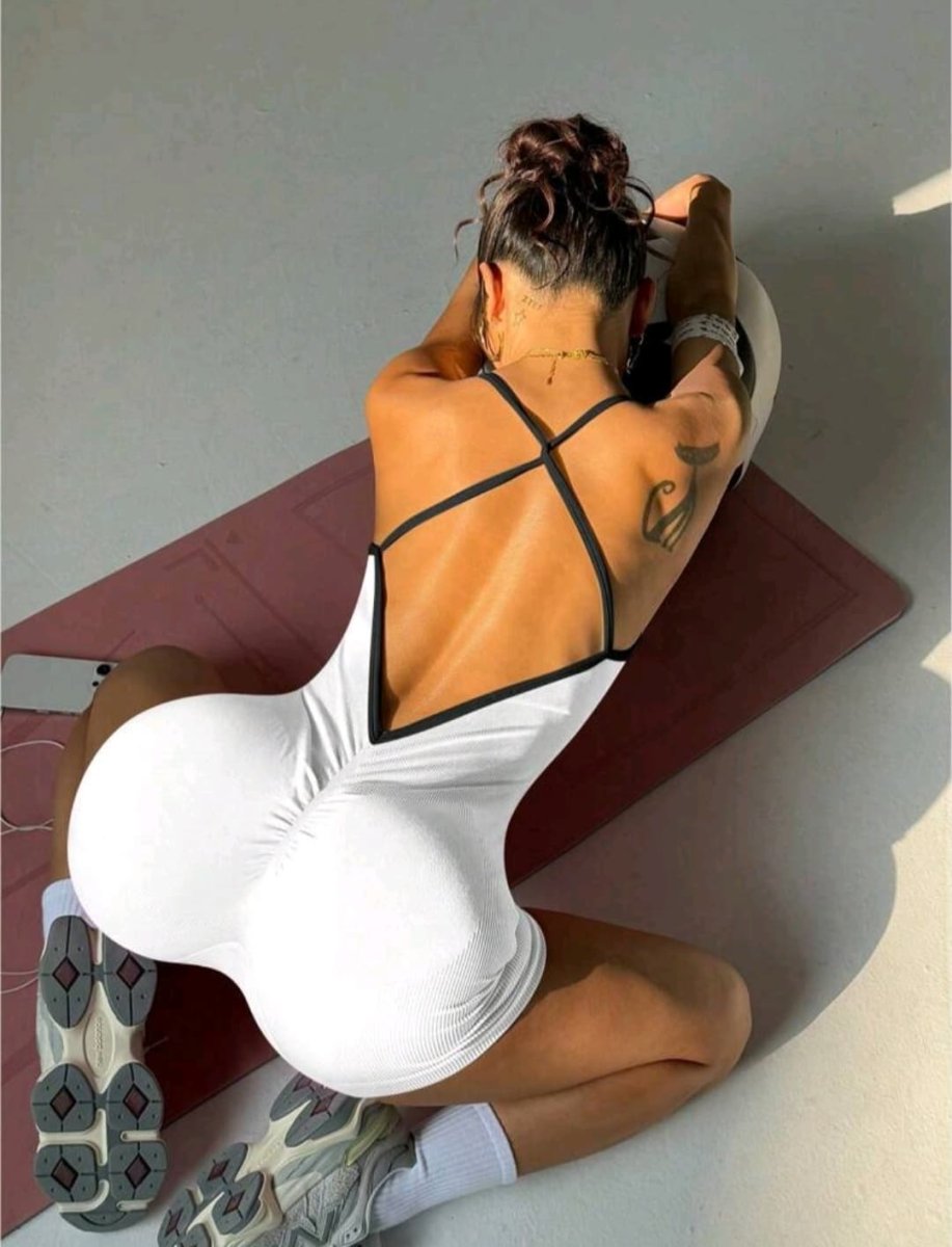 Luce segura y con estilo mientras entrenas con nuestro Enterizo Deportivo Push Up en color blanco. Diseñado para resaltar tu figura, este enterizo presenta un favorecedor corte en V dando realce, junto con una espalda descubierta de tirantes cruzados, brindando un toque moderno y femenino.