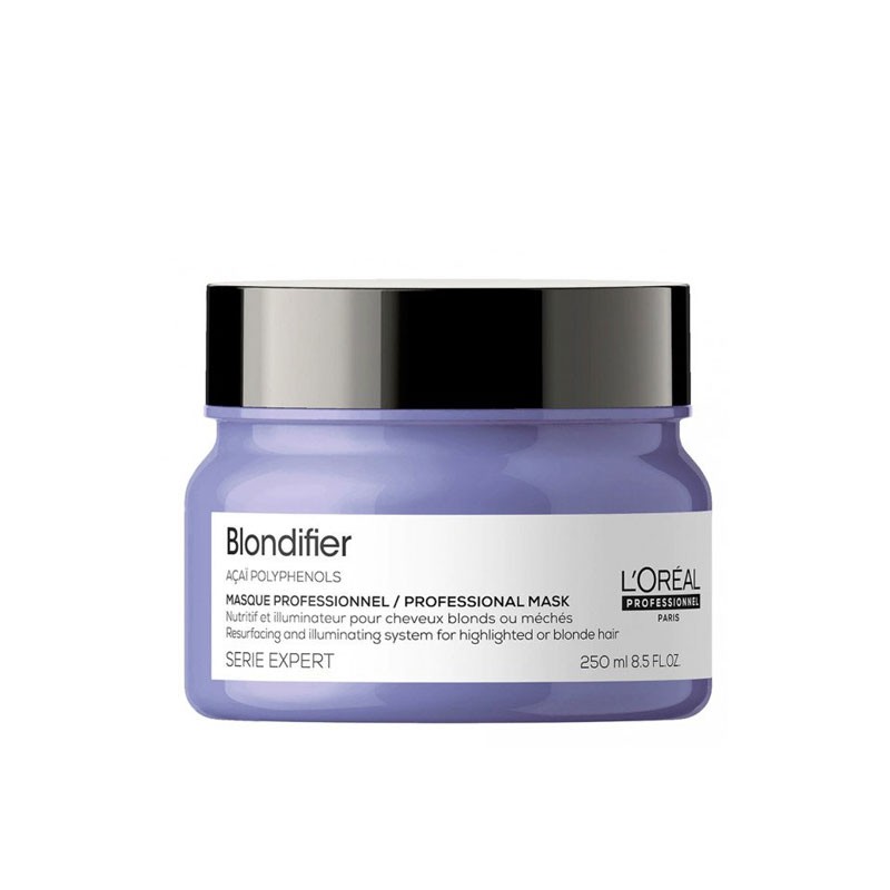 - Aplicar Serie Expert Blondifier Mascarilla Repara e Ilumina de L’Oreal París sobre el cabello lavado y secado con toalla.