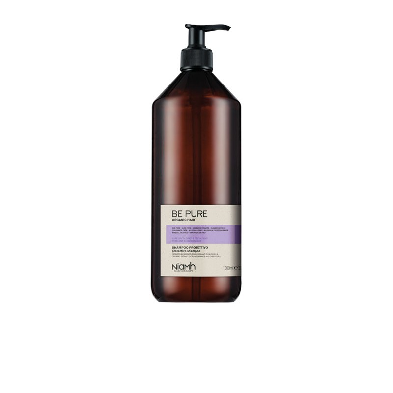 Limpia y protege el color. Diseñado para cabellos dañados por tintes o decoloraciones, el champú protector Be Pure es un tratamiento práctico para proteger el cabello teñido. Su fórmula, rica en extracto de granada orgánica y caléndula, hidrata y acondiciona, protegiendo de los rayos UV y aportando el máximo brillo, al tiempo que evita la decoloración.