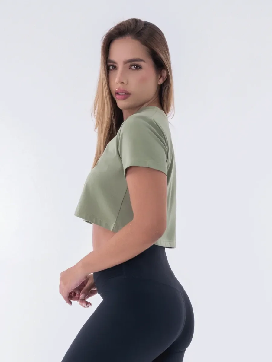 Una camiseta corta que equilibra simplicidad, funcionalidad y estilo.
